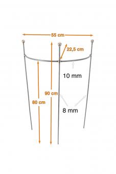 Staudenhalter HUGO halbrund Kugel stabil Breite 55cm Höhe 90cm Vollmaterial Rankhilfe mit Kugel Pflanzstütze Rankgitter